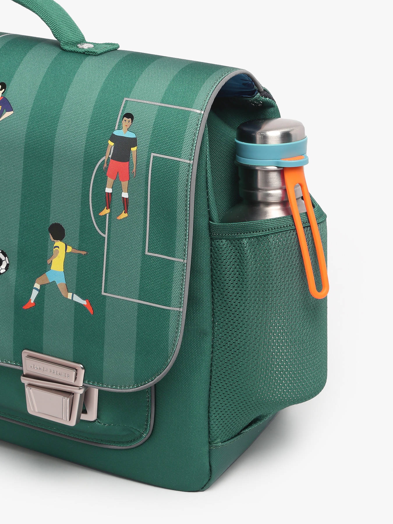38 cm - 17.1 litres - 1.1 kg ~ Ce cartable JEUNE PREMIER à 2 compartiments est idéal pour les enfants de 6 à 8 ans, filles comme garçons. Fabriqué en polyester robuste, il accompagne les journées d’école avec confort et fonctionnalité. À l’extérieur, il dispose d’une poche avant pratique, d’une poche latérale pour gourde ou petit objet, et se ferme facilement grâce à un rabat équipé d’un fermoir sécurisé. Les bretelles réglables et la poignée assurent un port ergonomique, au dos ou à la main. L’intérieur se compose de deux compartiments spacieux, d’une poche zippée et peut accueillir un dossier A4, un cahier 24x32 cm et un classeur A4.